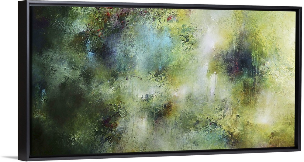 <p>Contemporary abstract artwork in shades of green, resembling a dark forest.</p>