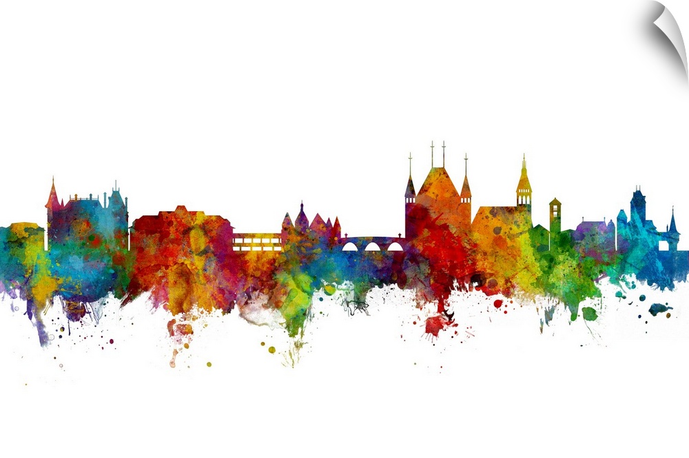 <p>Watercolor art print of the skyline of Thun, Switzerland</p>