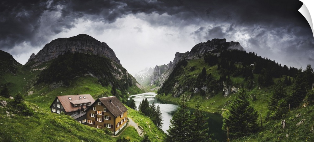 <p>Thunderstorm coming at Bollenwees refuge, Canton of Appenzell, Alpstein, Switzerland, Europe</p>