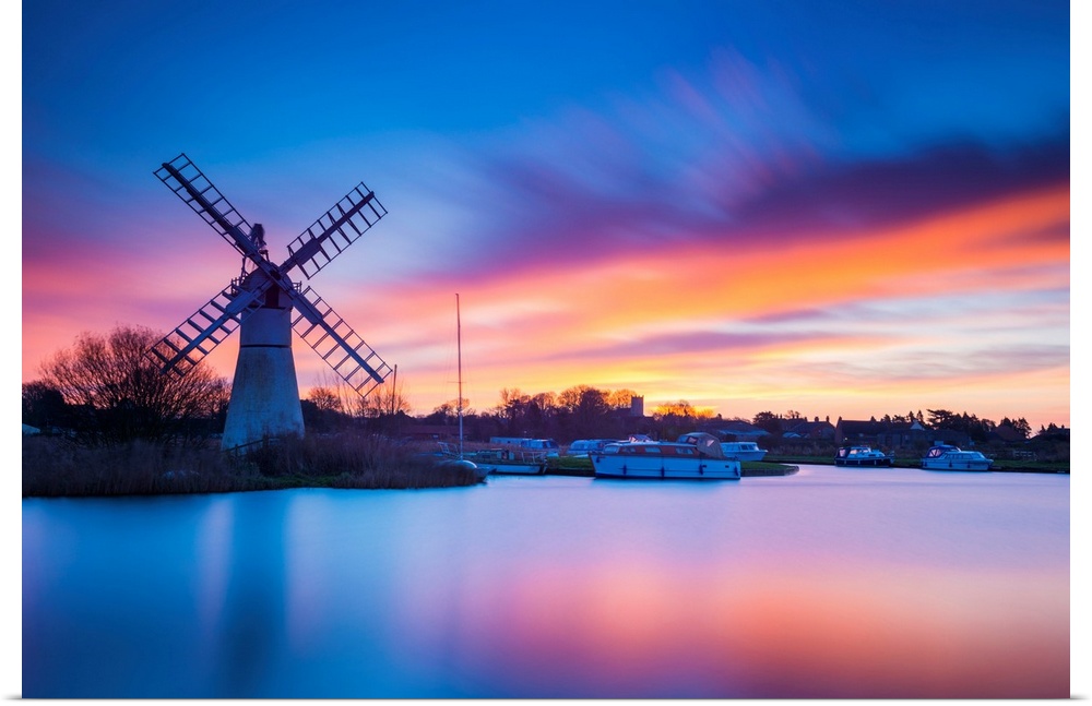<p>Thurne Mill At Sunrise, Norfolk Broads National Park, Norfolk, England</p>