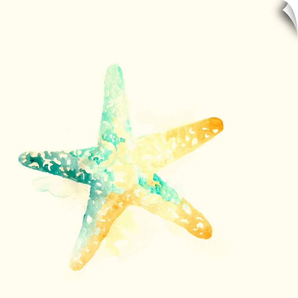 Art Coastal Beach House Décor Decorative Art Green Wall Art Painting June Erica Vess Watercolor Wildlife Marine Life Starfish