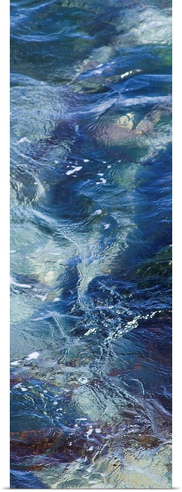 <p>Tall photograph of crystal clear blue water with ripples.</p>
