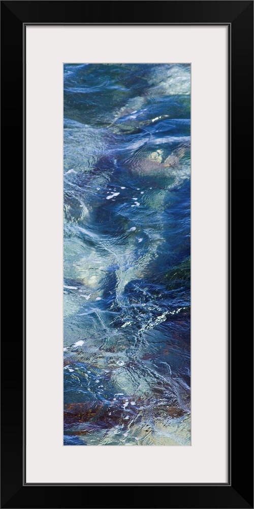 <p>Tall photograph of crystal clear blue water with ripples.</p>