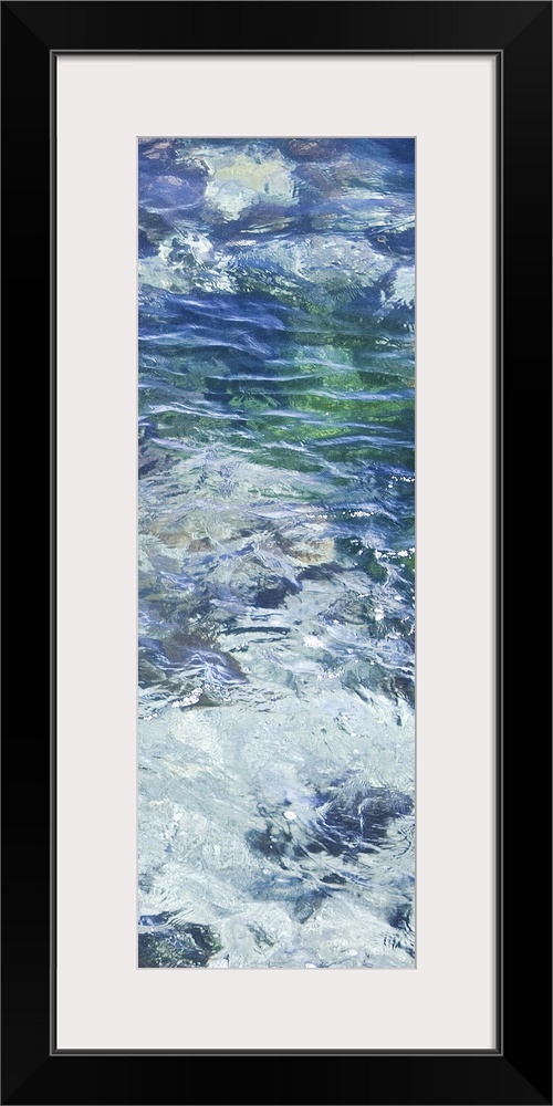 <p>Tall photograph of crystal clear blue water with ripples.</p>
