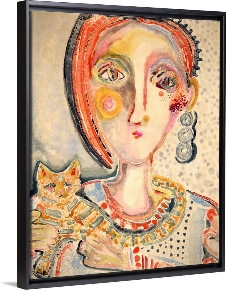 Art Wyanne Art Beige Contemporary Art Painting People Portraits Watercolor Cat