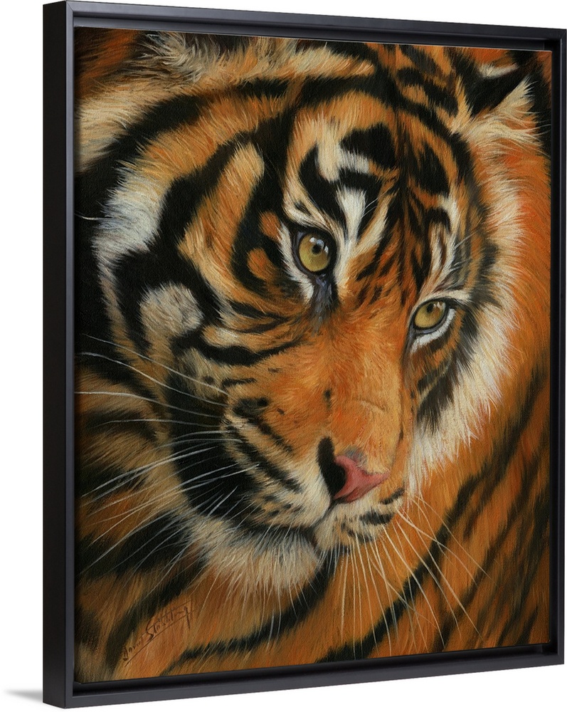 <p>Contemporary painting of a Siberian tiger staring at something with intent.</p>
