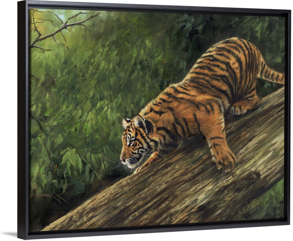 <p>Originally an oil painting on canvas depicting an Amur Tiger descending a tree trunk.</p>