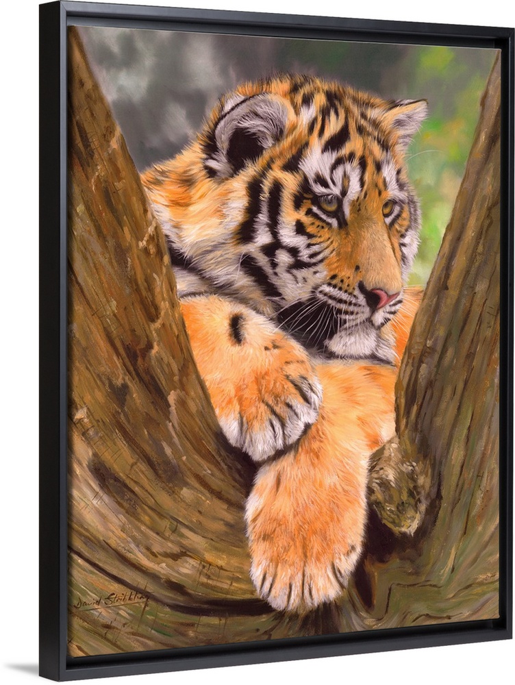 <p>Amur Tiger cub resting in crook of tree. Oil on canvas</p>