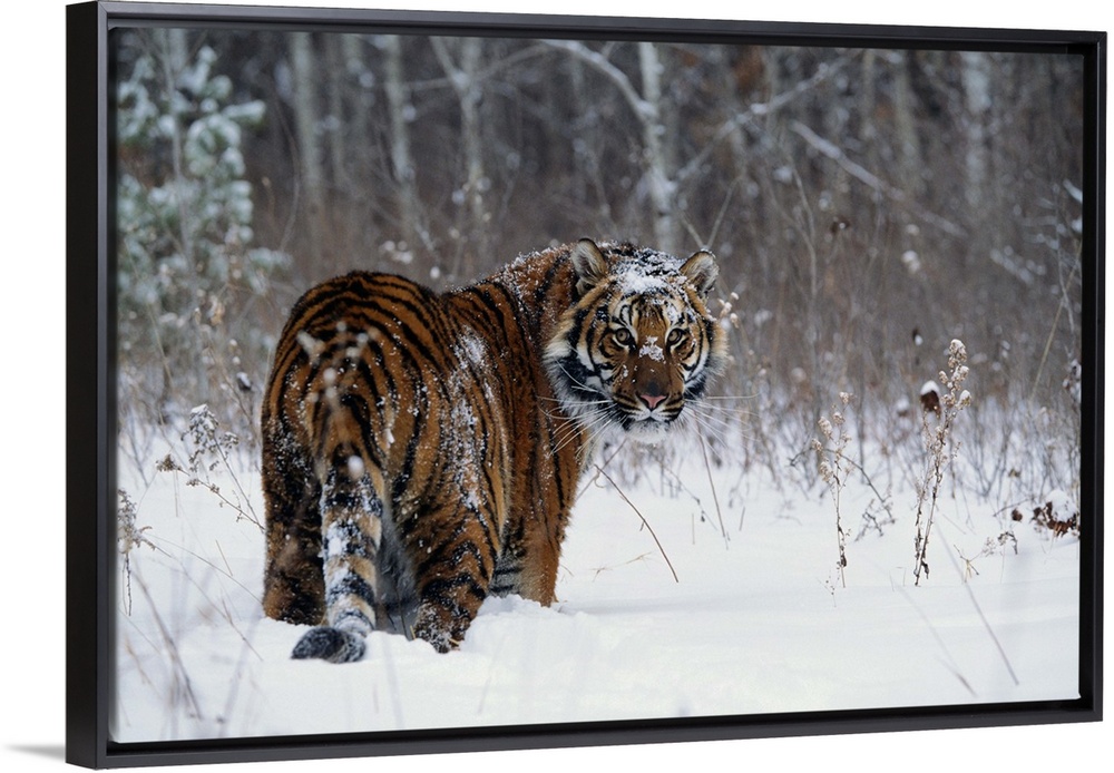 <p>Tiger (Panthera tigris) standing in deep snow</p>