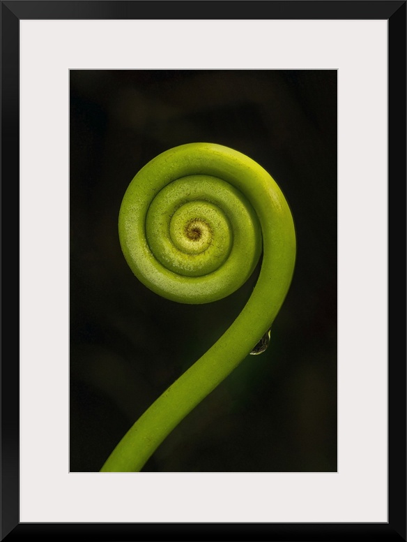 <p>Tightly coiled fern frond (fiddlehead) in the rainforest on Tenorio volcano, Volcan Tenorio National Park, Alajuela, Costa Rica, Central America</p>