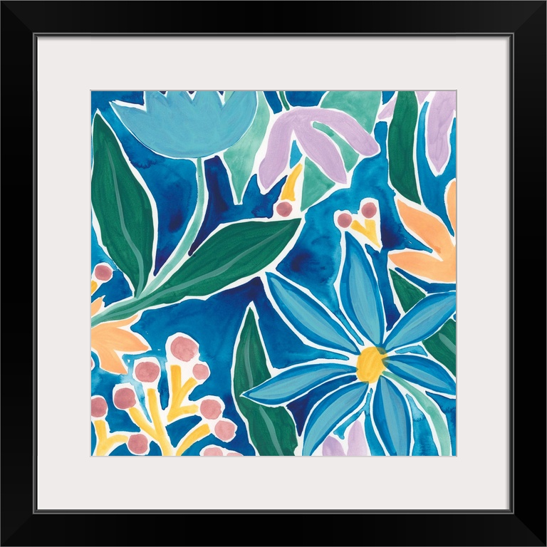 Art Blue Flowers Blue Wall Art College Dorm Décor Tropical Oasis Plants and Flowers Decorative Art Florals Flower Décor Painting June Erica Vess Watercolor