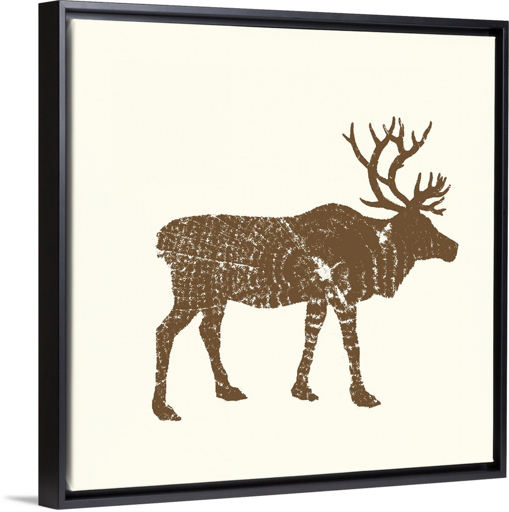 <p>Contemporary cabin decor artwork of a woodland animal silhouettes made up of stamp cross section tree patterns.</p>