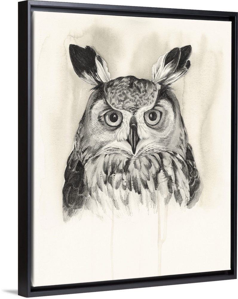 <p>Watercolor portrait of an owl in neutral hues.</p>