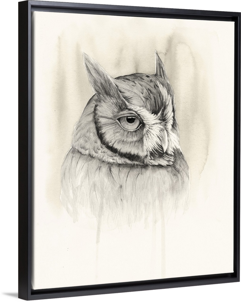 <p>Watercolor portrait of an owl in neutral hues.</p>