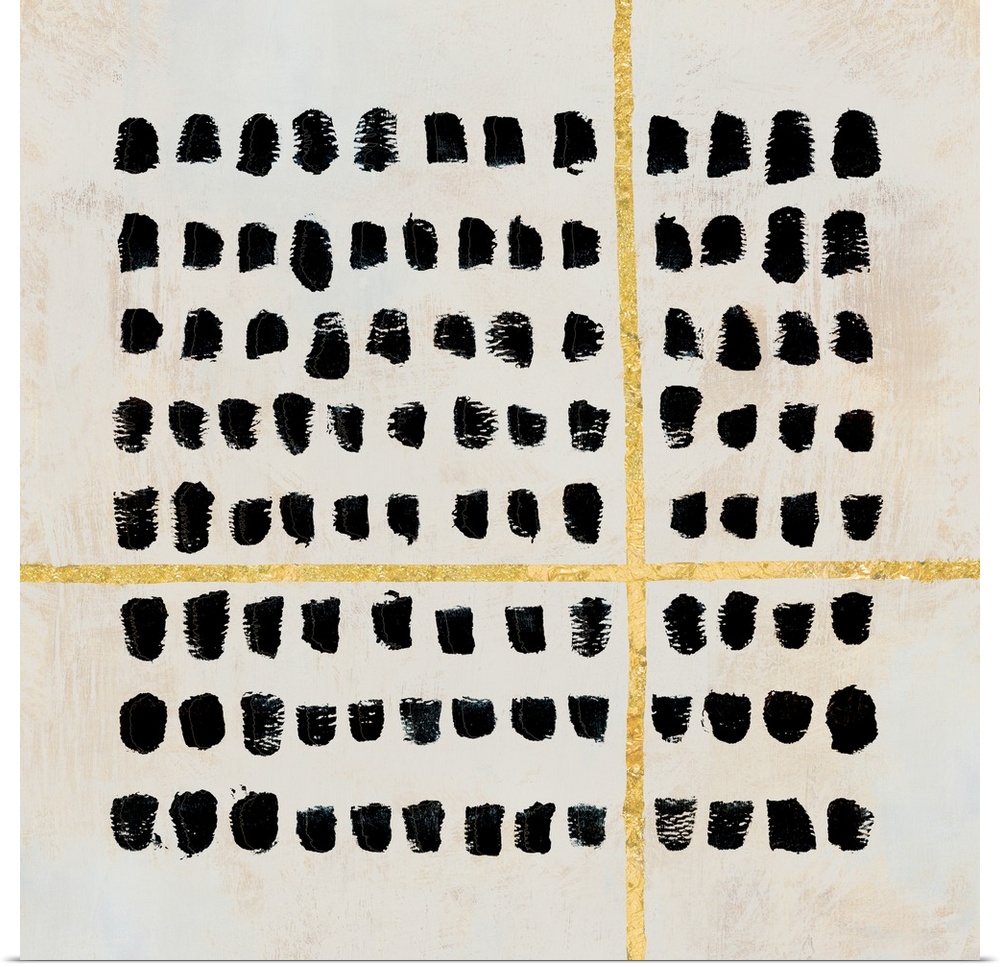 <p>Square contemporary painting of textured dots and lines in a pattern.</p>