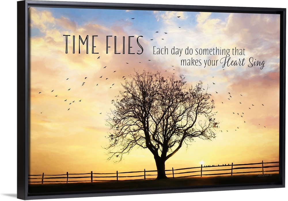<p>Decorative artwork featuring the words: Time flies, each day do something that makes your heart sing.</p>