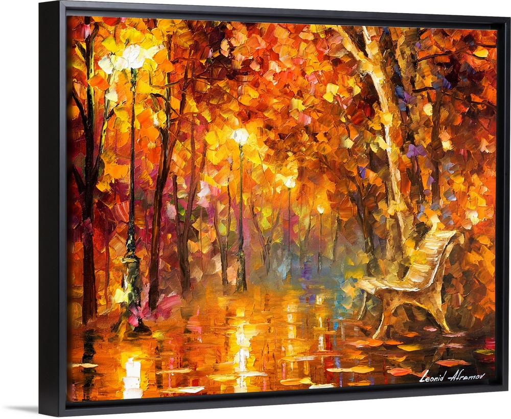 <p>Leonid Afremov was an extraordinarily prolific contemporary artist with a style all his own. His palette knife paintings depict people, cities, seascapes, gardens and animals in bold colors. Afremov’s love for brilliant colors may be cathartic, an affirmation that he had risen above the struggles and drudgery that plagued him early in his career in Russia and Israel. Afremov’s intricate and timeless paintings make spectacular canvas prints that will add a touch of sophistication and charm to any room.</p>