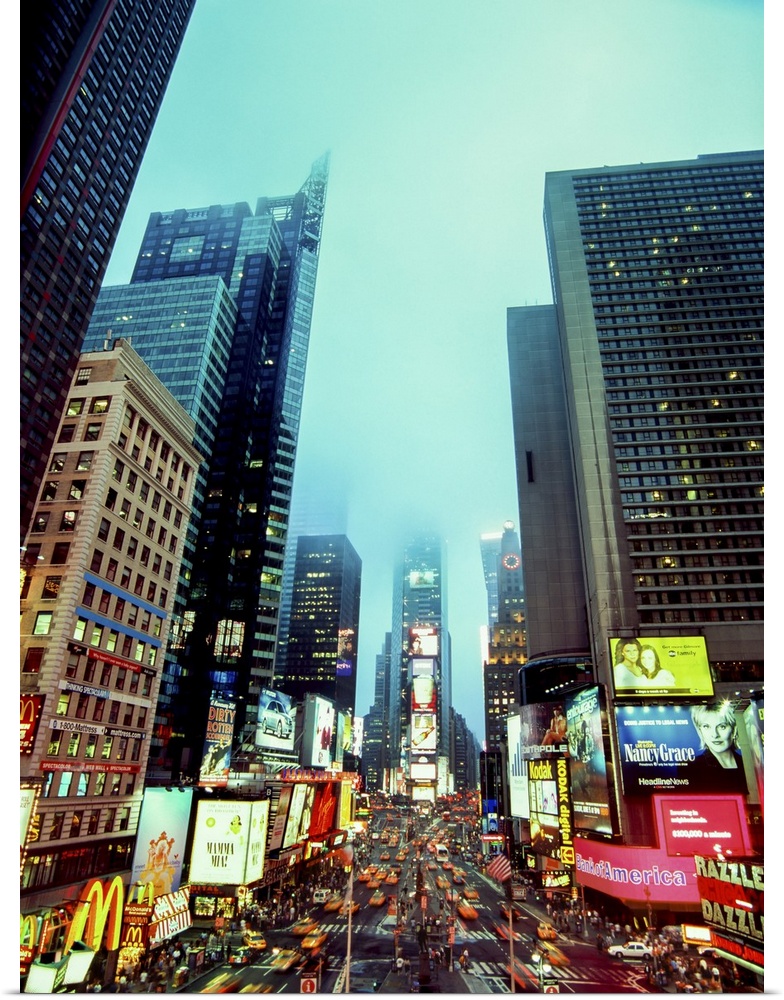 <p>Time Square in fog at dusk, New York City, New York, USA</p>