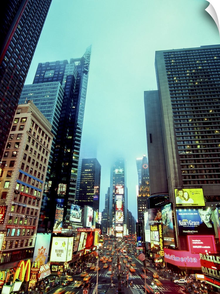 <p>Time Square in fog at dusk, New York City, New York, USA</p>