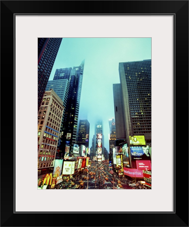 <p>Time Square in fog at dusk, New York City, New York, USA</p>