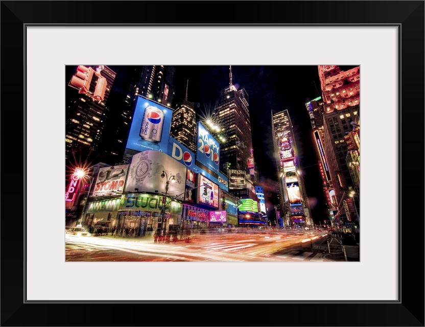 <p>Night photograph of the bright lights of Times Square in New York City, New York.</p>
