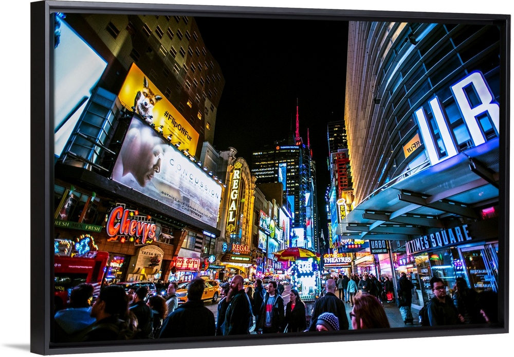 <p>View of advertising signs on 42nd street in New York city at night.</p>
