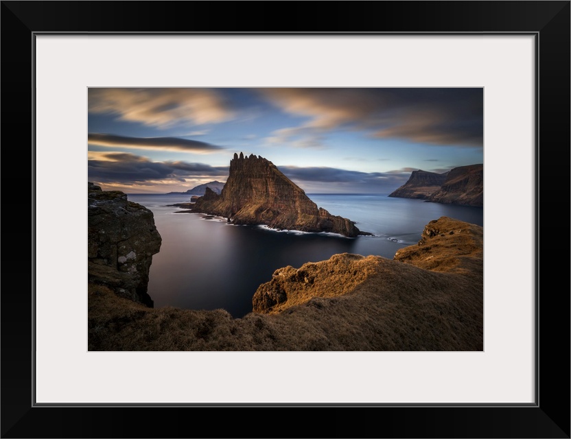 <p>Tindholmur island next to Vagar island in sunset, Faroe Islands, Denmark</p>