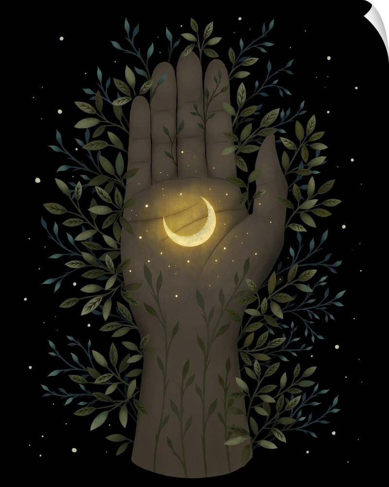 Art Decorative Art Episodic Drawing Fantasy Florals Leaves Graphic Art Moon