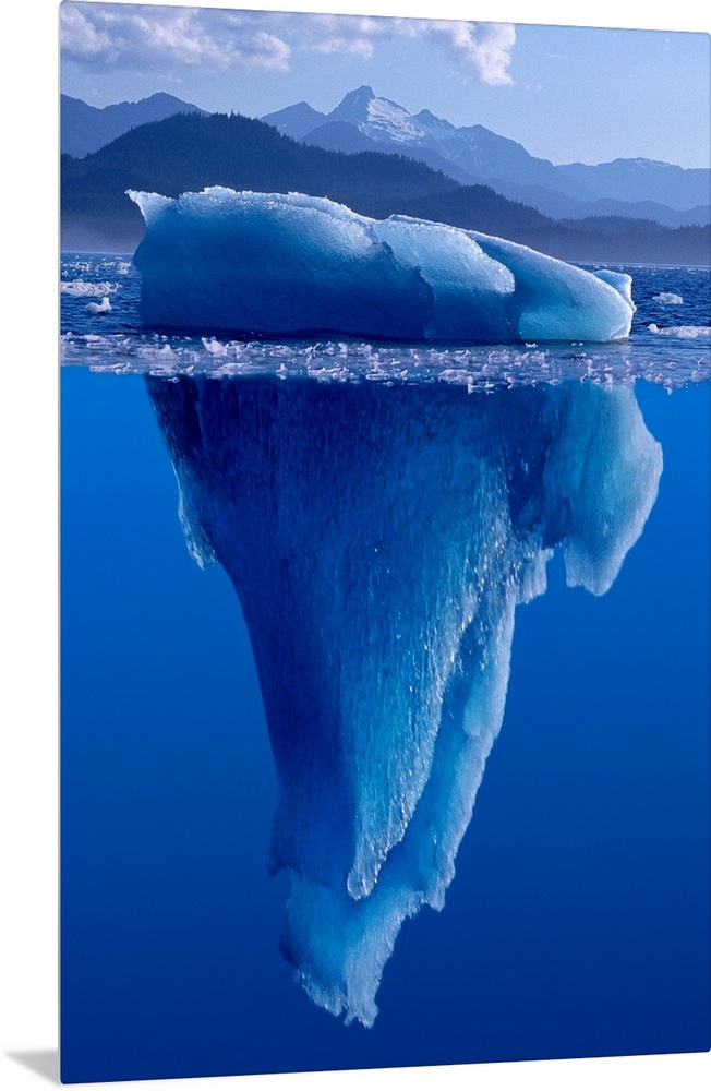 <p>A composite photograph of a large Iceberg as seen from under and above the water.</p>