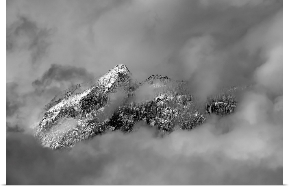 <p>The tips of a few of the Valhalla Mountains accross Slocan Lake in British Columbia, Canada.</p>