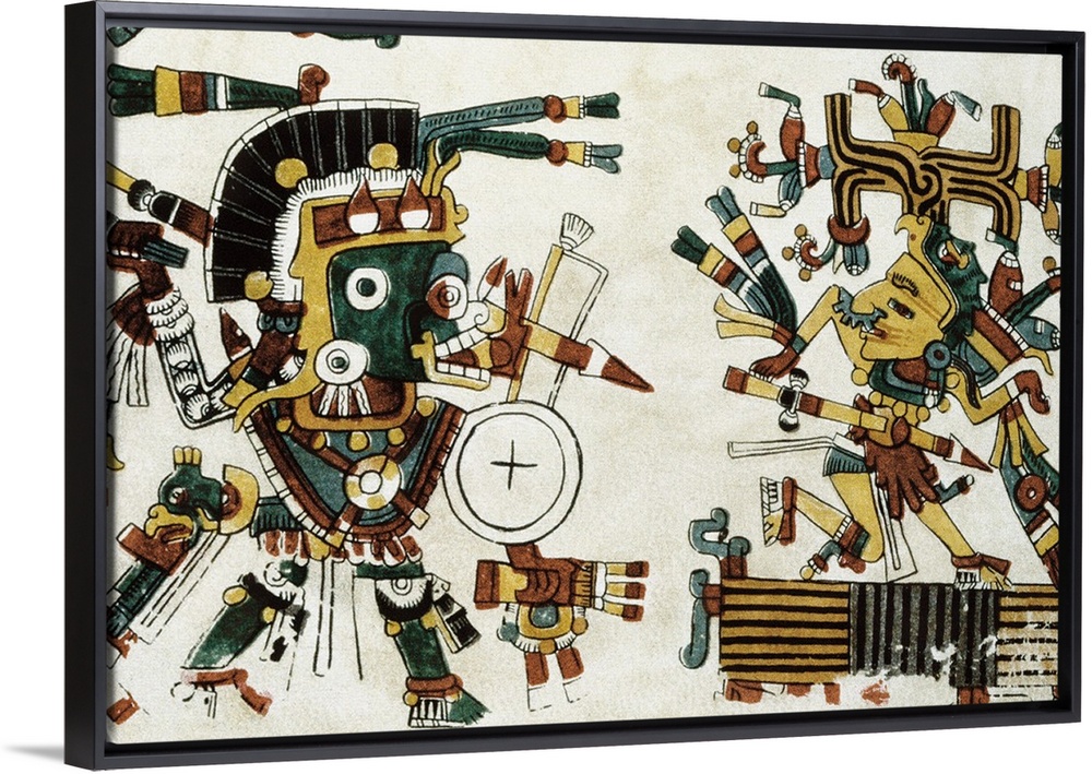 <p>Codex Cospi. Circa 15th c. Tlazolteotl and Chalchiuhtlicue, goddesses of love and water, respectively. Ritual calendar ca. 15th century from Mixtec or Aztec culture. 1898 facsimile edition. Pre-Columbian art. Miniature Painting. MEXICO. Mexico City. Biblioteca Nacional de Antropologia e Historia (National Library of Anthropology and History). -</p>