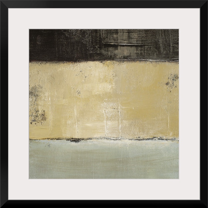 <p>This is a square abstract painting by a contemporary artist made with three stripes of neutral colors.</p>