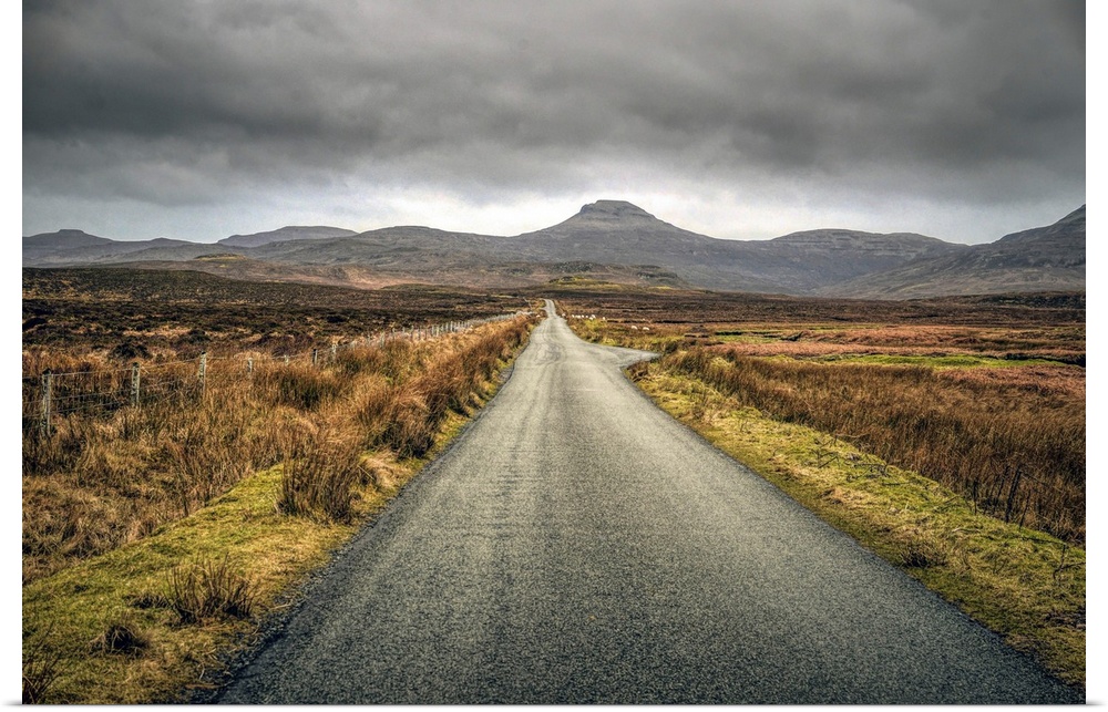 <p>Long straight road towards distant hills in Scotland, UK.</p>