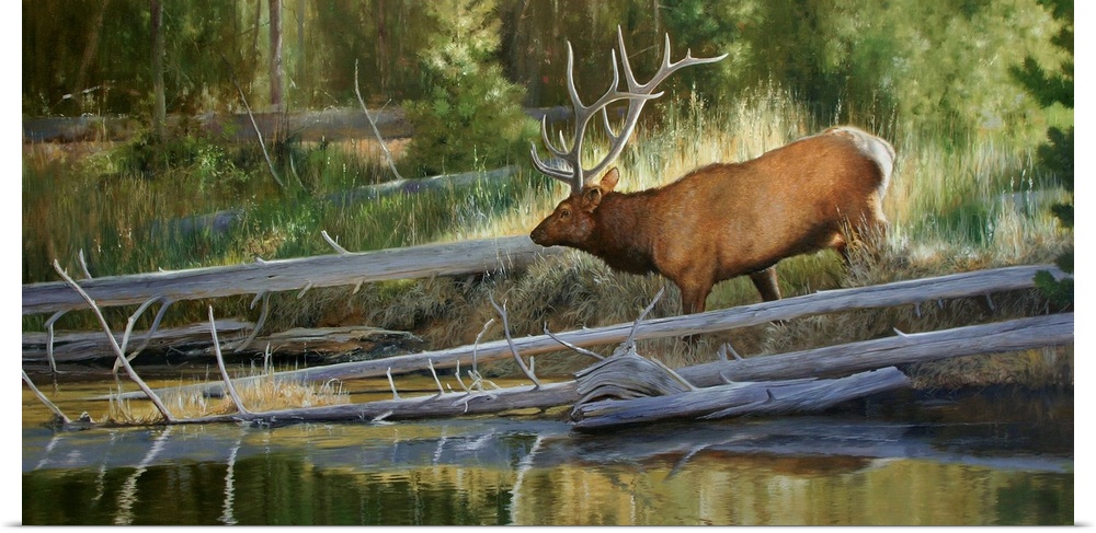 Art Contemporary Art Mark Kelso Landscapes River, Creek and Stream Painting Wildlife Moose and Elk