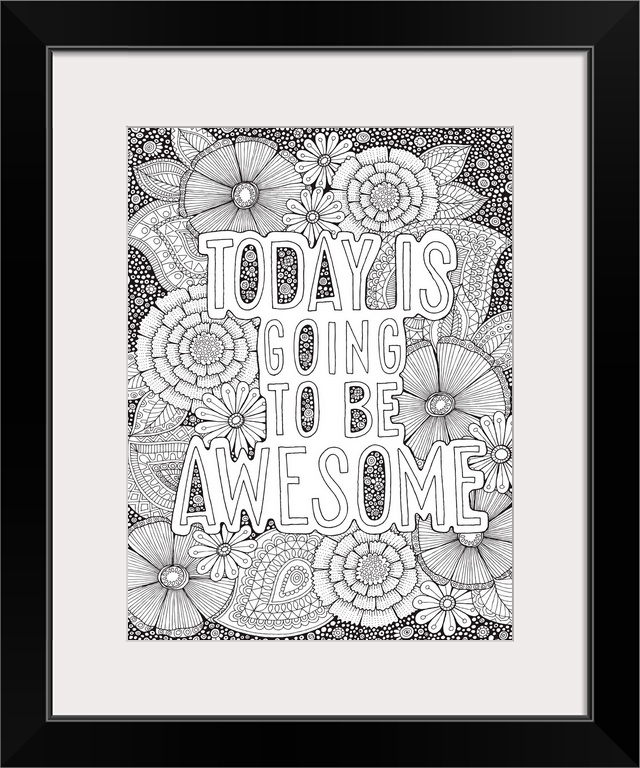 <p>Black and white line art with the phrase "Today is Going to be Awesome" written on top of an intricate floral design.</p>
