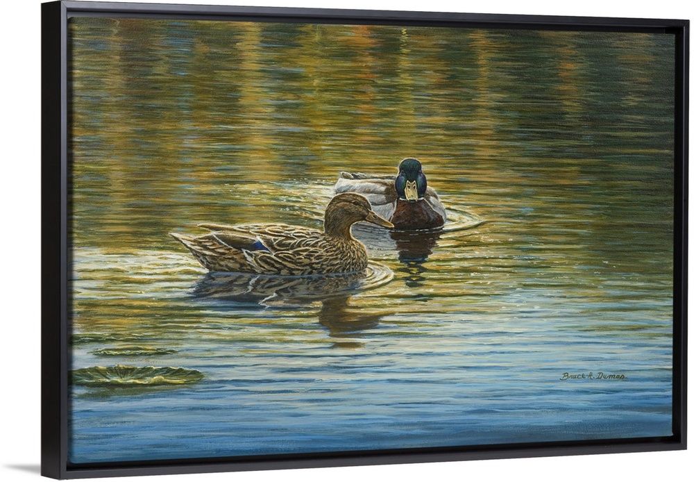 <p>Contemporary artwork of two ducks in water.</p>