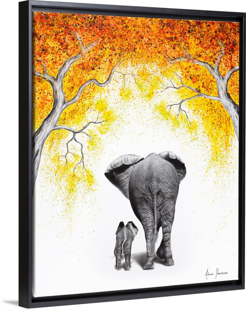 Art Decorative Art Ashvin Harrison Mixed Media Art Orange Wall Art Wildlife Elephant