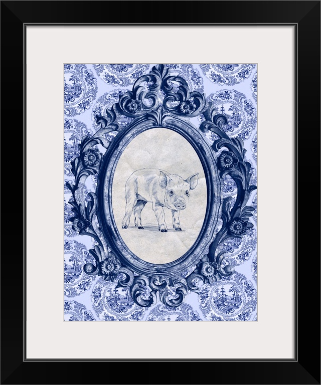Art Farmhouse Blue Wall Art Contemporary Art Graphic Art SEA Studio Wildlife Pig