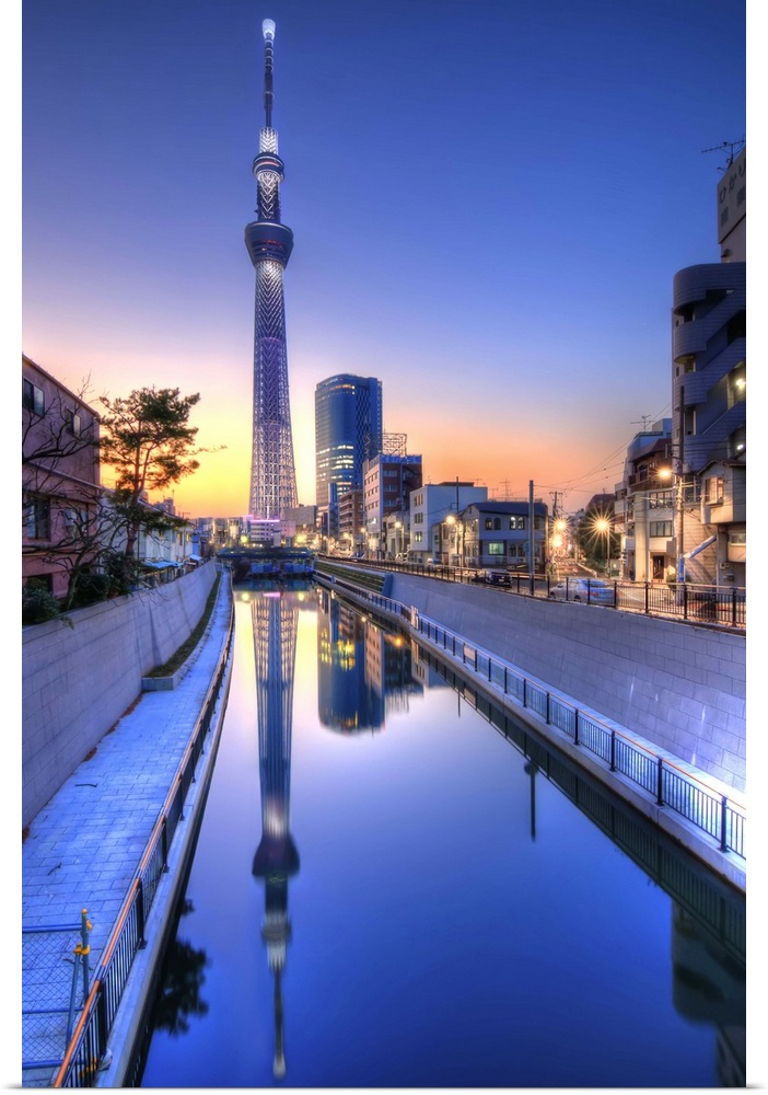 <p>Tokyo Sky Tree, Japan's highest tower at 634 meters, is reflected in a canal at sunset.</p>