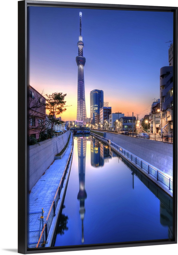 <p>Tokyo Sky Tree, Japan's highest tower at 634 meters, is reflected in a canal at sunset.</p>