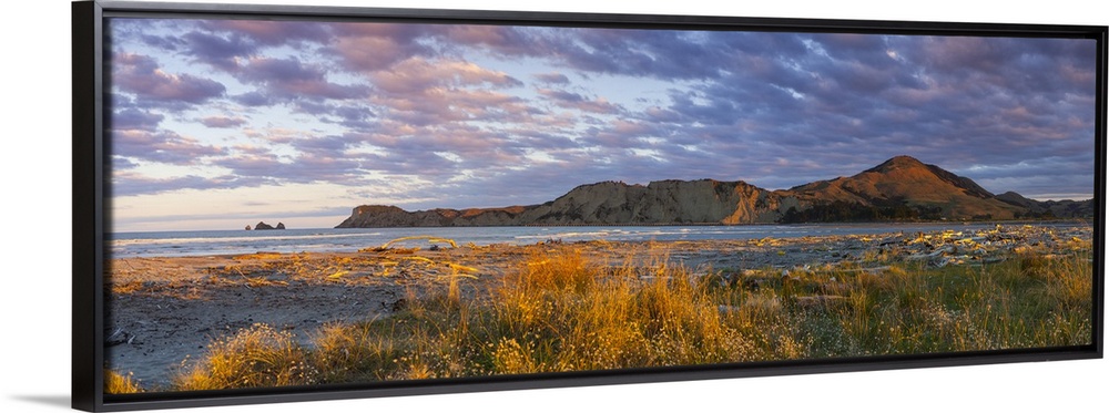 <p>Dramatic coastal landscape illuminated at sunset, Tologa Bay, East Cape, North Island, New Zealand</p>