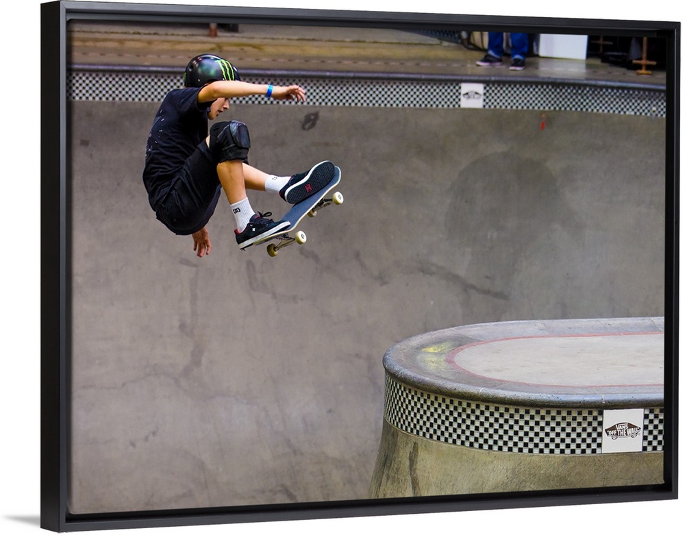 <p>Tom Schaar jumping on his skateboard at Vans Off The Wall Skatepark in Huntington Beach, California, 2016.</p>