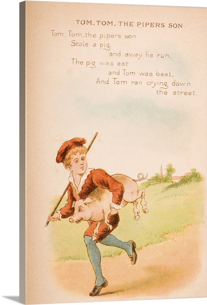 <p>Nursery Rhyme And Illustration Of Tom Tom The Piper's Son From "Old Mother Goose's Rhymes And Tales." Illustrated By Constance Haslewood. Published By Frederick Warne and Co, London And New York, Circa 1890s. Chromolithography By Emrik and Binger Of Holland.</p>