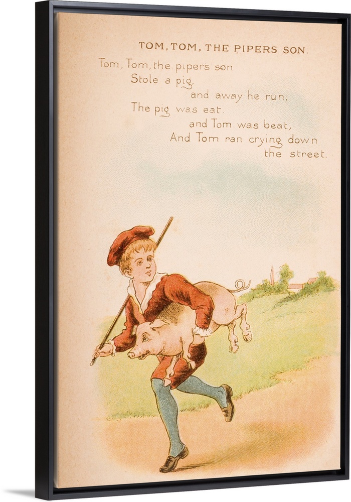 <p>Nursery Rhyme And Illustration Of Tom Tom The Piper's Son From "Old Mother Goose's Rhymes And Tales." Illustrated By Constance Haslewood. Published By Frederick Warne and Co, London And New York, Circa 1890s. Chromolithography By Emrik and Binger Of Holland.</p>