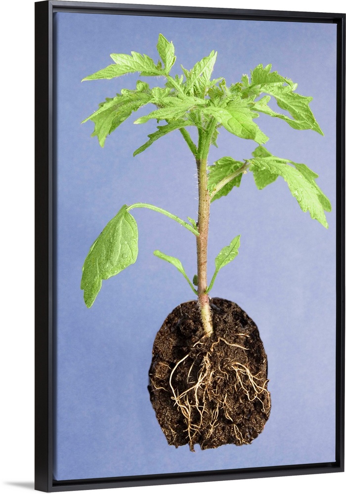 <p>Tomato plant (Solanum lycopersicum). Aerial parts and root system of a young tomato plant.</p>
