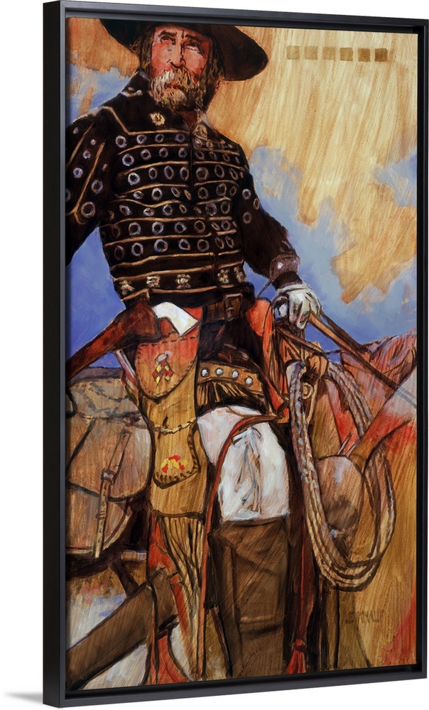 <p>Contemporary western theme painting of a cowboy on horseback.</p>