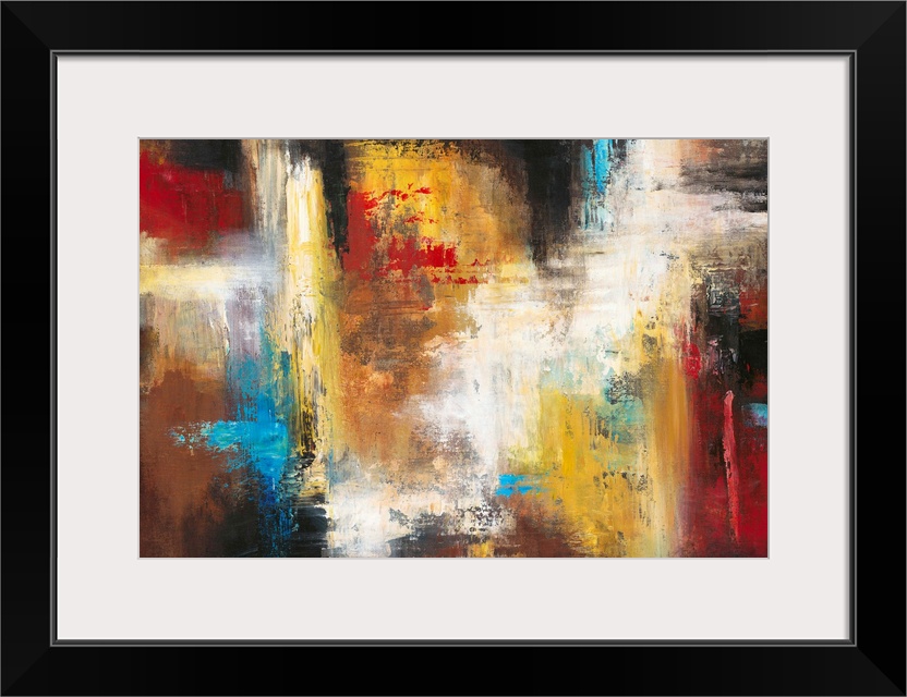 <p>Contemporary abstract painting using a variety of colors in smearing and striking motions.</p>