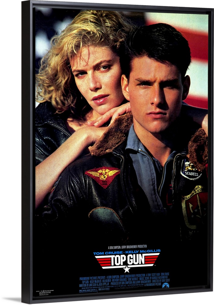 <p>Movie poster for the hit film "Top Gun". Tom Cruise and his love interest are shown on the poster.</p>