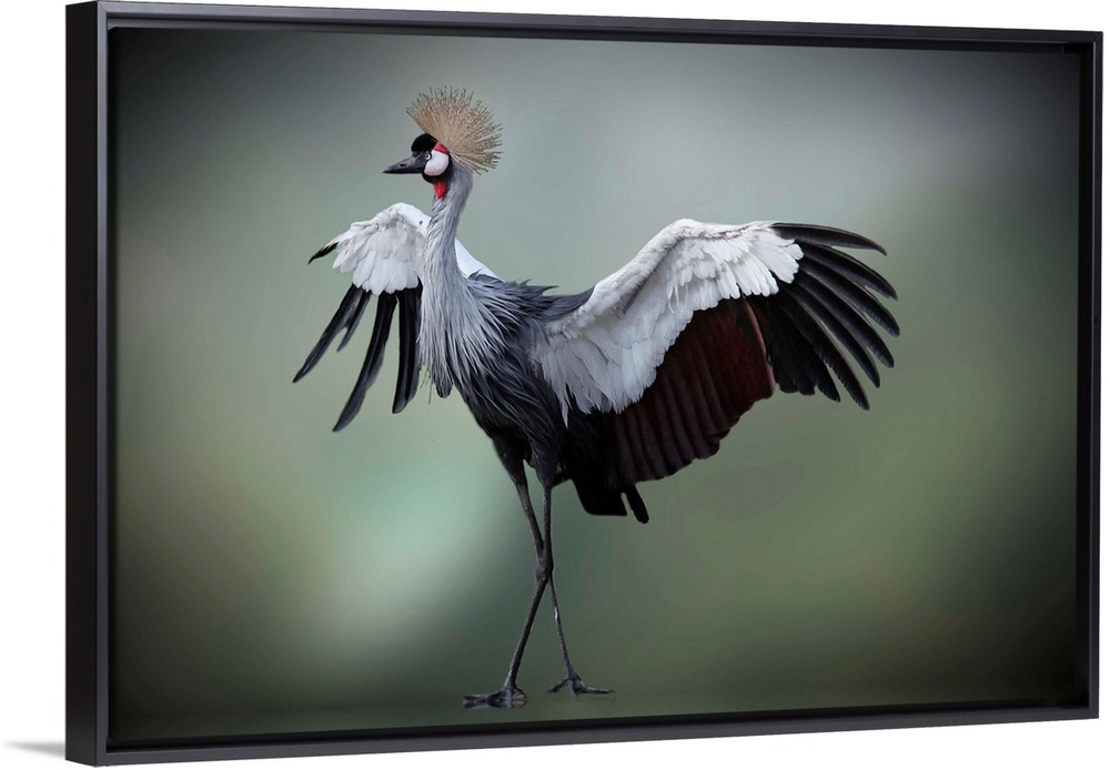 <p>Crowned Crane spreading its wings nad showing off its feathers.</p>