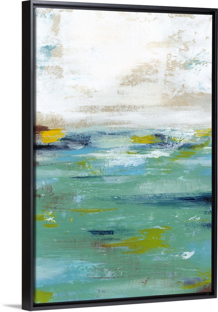 <p>Abstract painting resembling a body of water meeting the sky at the horizon.</p>